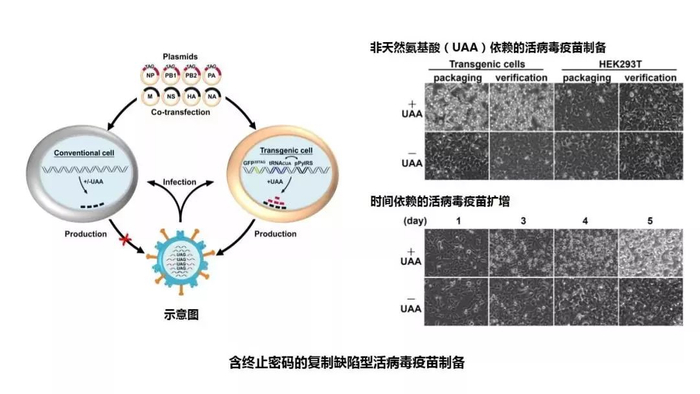 此类疫苗的特点是保留了野生型病毒的全部抗原、感染活力和相同的感染途径,可以诱发人体产生强而广的体液免疫、鼻腔黏膜免疫以及T-细胞活化免疫应答,但感染人体后复制能力缺失。这种复制缺陷的活病毒疫苗在老鼠、雪貂和天竺鼠模型中得到验证,达到广谱、持久和高效的效果。该方法颠覆了传统灭活/减毒疫苗的理念,前者需改变病毒抗原结构去除其毒性,只能部分激发人体免疫力,所以需要多次接种。后者需要复杂的工艺处理方能保留病毒的完整结构,但仍具有弱的复制能力和潜在的致病性,安全隐患大。该方法将是研发活病毒疫苗的一种通用方法,并可针对几乎所有病毒。