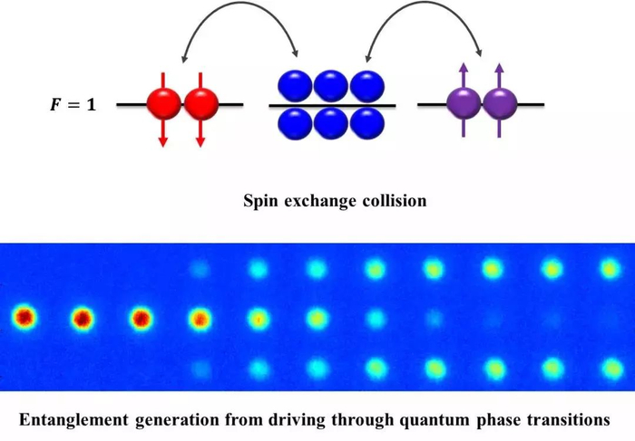 清华大学物理系尤力和郑盟锟研究组,通过调控铷-87原子玻色-爱因斯坦凝聚体中的自旋混合过程,使其连续发生两次量子相变,实现了包含约11000个原子的双数态的确定性制备。通过直接观测该纠缠态,他们表征其不同内态间原子数的差值的涨落低于经典极限10.7±0.6分贝,其集体自旋的归一化长度为近似完美的0.99±0.01。这两个指标反映该多体纠缠态可以提供超越标准量子极限约6分贝的相位测量灵敏度,以及至少910个的纠缠原子数——创造了目前能确定性制备的量子纠缠粒子数目的世界纪录。利用量子相变确定性制备多体纠缠态是一种崭新的尝试。由于连续量子相变点处有限系统的能隙很小,系统穿过相变点时会产生较大的激发。他们的研究显示即使这种激发会发生,量子相变点两边迥异的多体能级结构依然能够帮助制备出高品质的多粒子纠缠态。