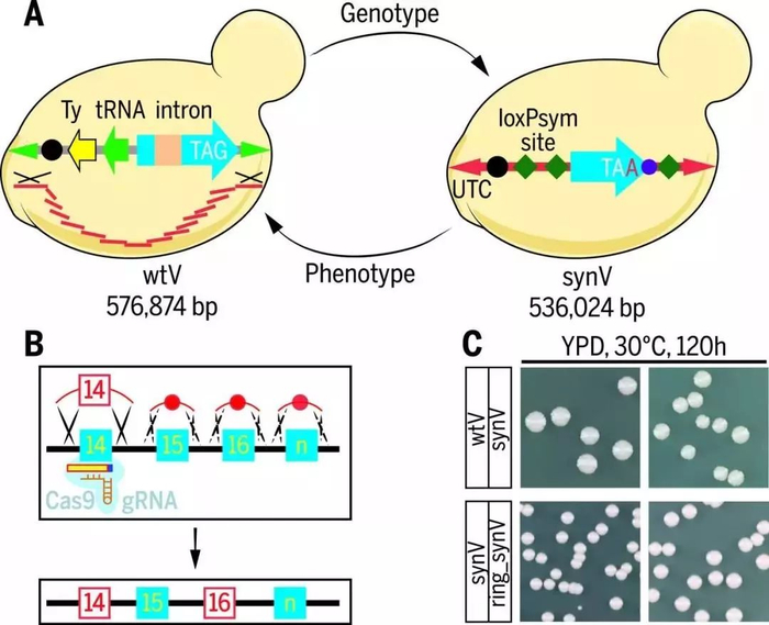 ▲ 酿酒酵母长染色体的精准定制合成