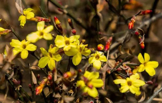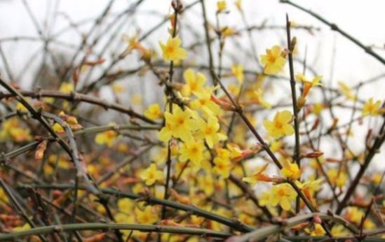 清代赵执信《迎春花》诗中云:“黄金偷色未分明,梅傲清香菊让荣。依旧春寒苦憔悴,向风却是最先迎。”