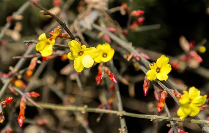 宋代刘敞《迎春花》诗赞道:“秾李繁桃刮眼明,东风先入九重城。黄花翠蔓无人愿,浪得迎春世上名。”