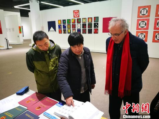 图为“汉字慧”项目负责人高晓明和法国国民教育部汉语总督学白乐桑交流。受访者供图