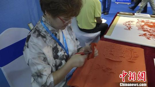 庐州剪纸传承人侯宏妹在制作剪纸作品 张俊 摄