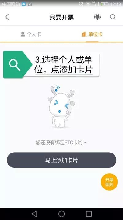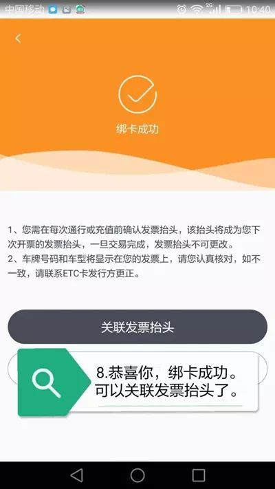 (三)绑定ETC卡或用户卡。客户登录发票服务平台,填写ETC卡或用户卡办理时的预留信息(开户人名称、证件类型、证件号码、手机号码等),经校验无误后,完成ETC卡或用户卡绑定。