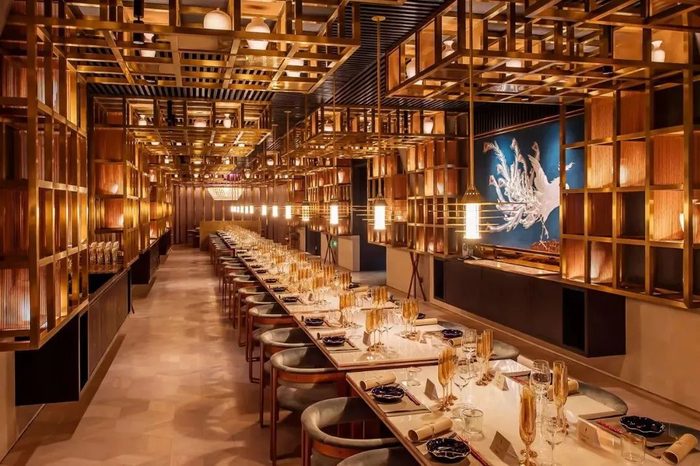 这可能是长相最华丽的中餐厅了,The Peacock Room 与誉八仙是同门,餐厅的墙上挂着巨幅的孔雀刺绣,还拥有全城最长、可以容纳60人的餐桌。