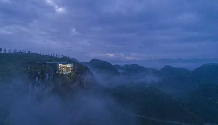 出自建筑师何崴之手,在贵州一处悬崖的边上新建的美术馆。