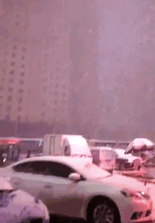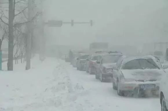 漫天暴雪中,无法前行的车辆排起了长队↑↑↑