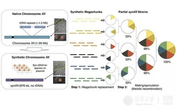 研究组基于原始碱基序列设计出新的碱基序列,并通过自主开发的分层组装和后续改造方案最终获得可在酿酒酵母体内正常发挥功能的合成十二号染色体(synXII),并对十二号染色体上编码核糖体RNA的DNA序列(rDNA)开展了一系列工程化改造。