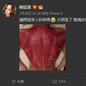 明星钟欣潼(阿娇)在微博晒了一张刮痧的照片,