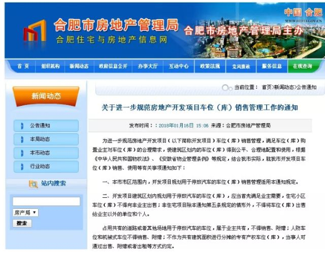 今年1月,合肥市房产部门出台《关于进一步规范房地产开发项目车位(库)销售管理工作的通知》(以下简称《通知》),于3月1日起实施,有效期两年。