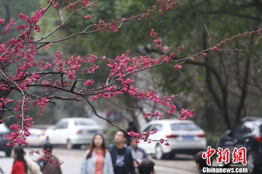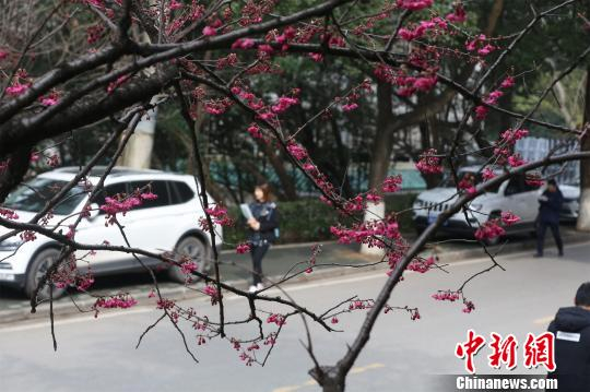 武汉大学早樱竞放 傲立枝头花姿俏 中国新闻网 2018.03.0117:30 关注 武汉大学校园内早樱竞相绽放 张畅 摄 早樱竞相绽放 张畅 摄 色泽红艳的花瓣傲立枝头 张畅 摄 武汉大学校园内早樱竞相绽放 张畅 摄 早樱色泽红艳 张畅 摄 绽放的早樱吸引了过往行人拍照 张畅 摄 早樱竞相绽放 张畅 摄3月1日,武汉大学校医院旁的珞珈山畔,几株早樱争相绽放。色泽红艳的花瓣傲立枝头,在微风中轻轻颤动,明媚动人,吸引了不少行人观赏、拍照。据了解,这些盛开的樱花是云南樱花,数量不多,花期较早。要观赏武汉大学校园内樱花大规模盛开之景,还需等待至3月下旬。