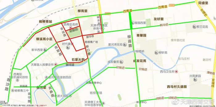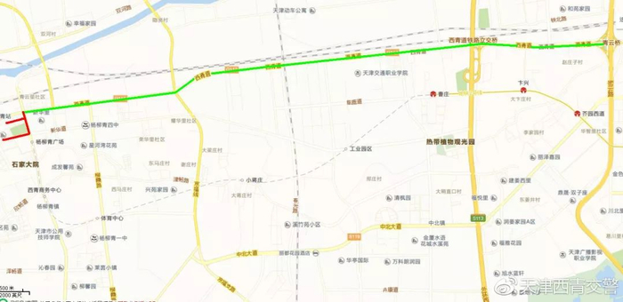 1、西青道直接进入杨柳青镇区。历年该道路是最拥堵的道路,一过外环线车辆就开始缓行,提示大家注意行车安全。