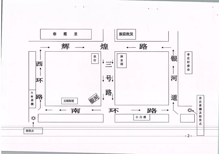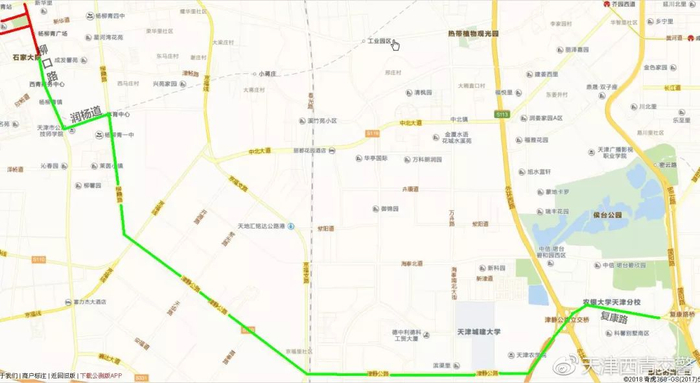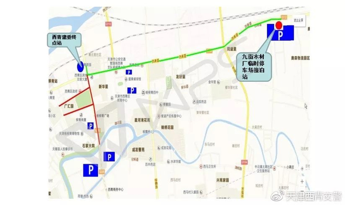接泊线路:西青道九街木材场临时停车场至柳口路建委大院,西青道—柳口路—建委大院,线路4公里。