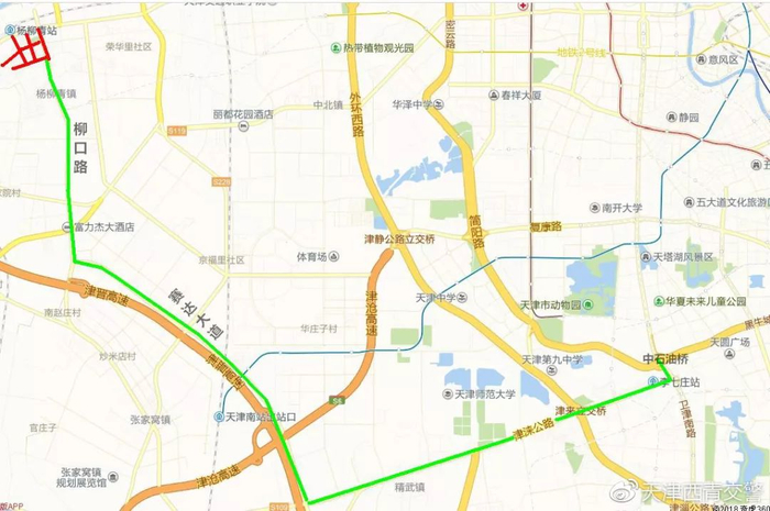4、中石油桥-津涞公路-赛达大道-柳口路进入杨柳青镇区;