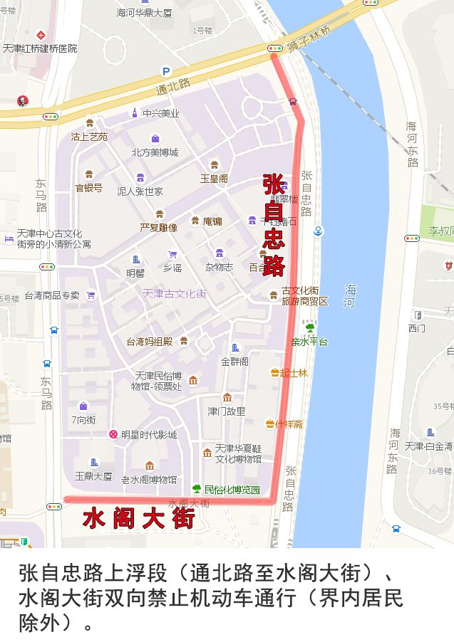 7、柳绿路由南向北禁止一切机动车通行,机动车可绕行七纬路、福滨路、津沽公路。