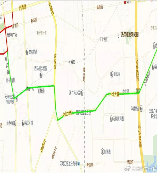 757路:改走西青道、柳霞路,撤销石家大院、中环学院、公用技师学院、莱茵小镇站,增设青云里、西青医院、柳霞路、星河湾花园、碧泉花园、杨柳青一中站。