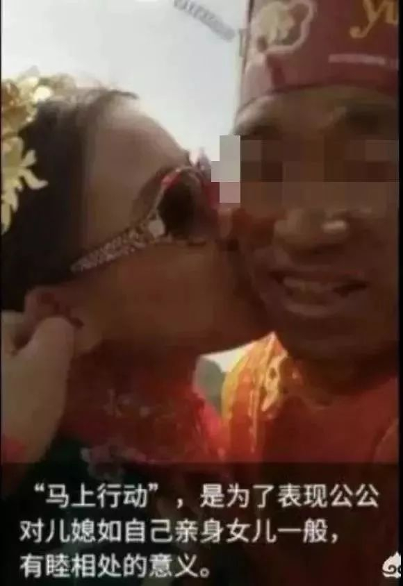 山西五台县也有婚礼当天公公轻薄儿媳的风俗。在儿子娶妻当天,公公要抱着儿媳骑马,并在马背上亲吻。