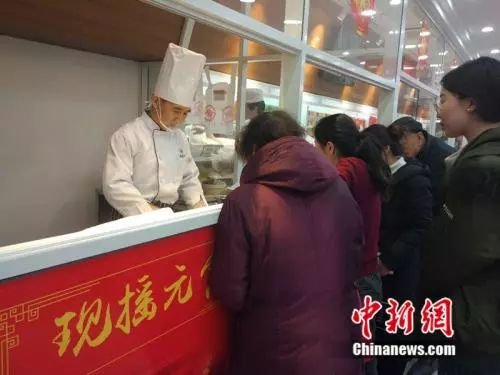 2月27日,北京稻香村于伯军师傅在某营业部现场展示了摇元宵的过程。