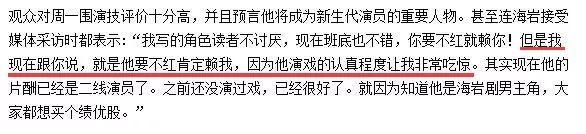 周一围是个特殊的存在,不仅长得周正漂亮,演起戏来让海岩都服气,说周一围要是不红肯定赖我,因为他演戏的认真程度让人吃惊。。。