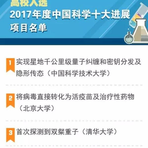 高校入选“2017年度中国科学十大进展”的成果有哪些,跟随小编一起来看↓↓↓