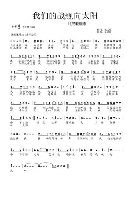 日照东方有巨轮,天音海曲赞强军。