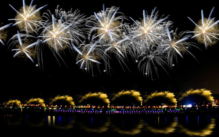 橘洲焰火晚会在杜甫江阁正对面,在杜甫江阁观赏无疑是最佳视角。