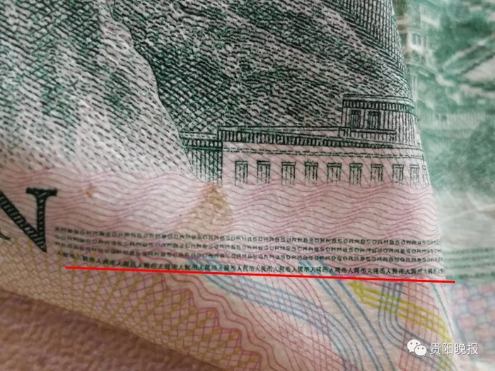 方法一:在纸币反面底部,其实有一行小字,肉眼基本看不清。
