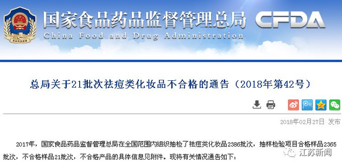 这21批次祛痘类化妆品不合格!