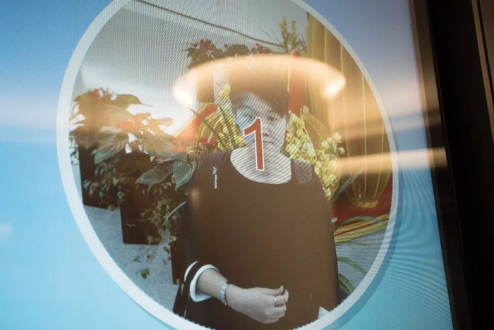 大屏幕左右设有搜集游客面部表情的摄像头,获得游客面部表情后,大屏幕上就会呈现出游客在海上“划船”、“游泳”、“冲浪”的情景。