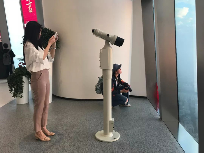 置身云际观光层,最重要的就是自拍了!但是商报君发现,无论是用手机拍,还是相机拍,都只能拍到玻璃窗外的风景。