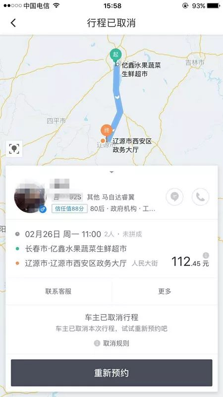 2月26日上午,在长春的于先生和朋友临时有事要赶往辽源,“于是我就用滴滴出行预约了一辆顺风车,打算11点出发。”因预约订单生成后,顺风车车主主动打来电话询问出行情况,这让于先生对出行的约定更加放心。“他打电话确定几人乘车,确定乘车时间,我们也达成一致,定在中午11点出行,这都是协商好的呀,怎么能说变卦就变卦?”
