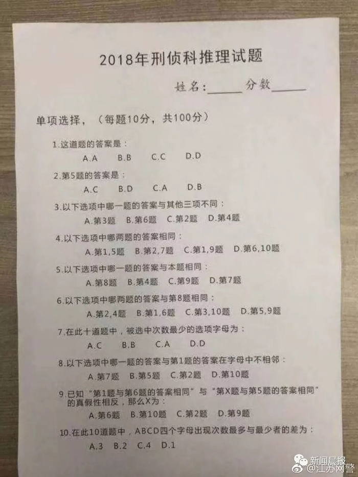 2018年刑侦科目推理试题。