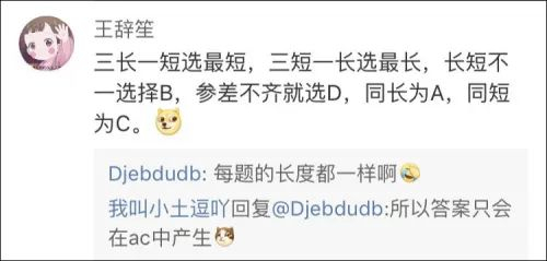 遇上不会的题目,三长一短选最短…