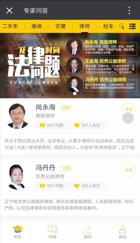 点击左下菜单【问专家】-律师