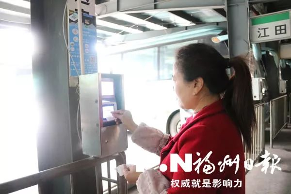 在福州汽车南站前往长乐班线的上车点旁,乘客陈女士正在使用“售检一体机”买票,显示屏上显示线路、车牌、票价、发车时间、剩余时间、已售票数、已检票数、余座等信息,用手机微信或支付宝对着扫描窗口扫一扫,就能完成出票和检票程序。