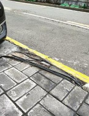 在科技路与高新六路交会处东侧,中国建设银行外的人行道上,记者看到,一条长约10米的线缆躺在人行道上,一头从地面下“钻出”,另一头则“钻进”绿化花坛边的地面内。记者采访时,刚好有两名男童在该处人行道上追逐,其中一名约四五岁的男童差点被脚下的线缆绊倒,吓得一旁的家长大喊“小心脚下”。在二环南路西段中海华庭小区外,记者在人行道上也发现一处线缆。该处线缆在人行道道沿边,六根缠在一起,线缆两头都埋进人行道地砖内,留在地面的线缆长约1米。“经常有人站在这里挡出租车,有时候跑得着急,一不小心就被绊倒了。”中海华庭小区业主曹女士说,该处人行道不久前才铺了新路面,除了此处,这条路上留下的线缆圈还有不少。在二环南路西段西口处,莱安逸境小区外停车场与人行道之间,记者确实又发现了两处缠绕在人行道上的线缆成了绊人的“绳子”。