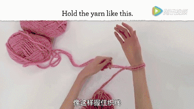 打一个活结,将毛线圈套在手腕上,然后用图示方法抓住毛线。