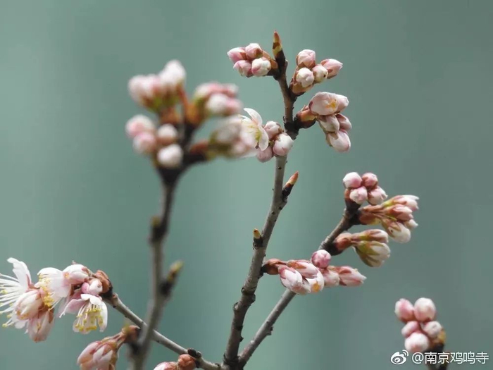 鸡鸣寺微博上也曝光了几组樱花消息树的照片