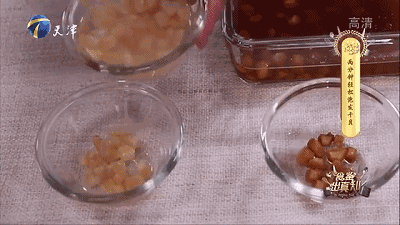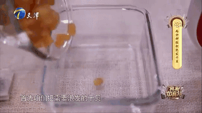 将干贝装入玻璃碗中