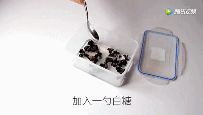 同样将需要泡发的木耳放入保鲜盒中