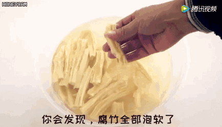 捏一捏泡好的腐竹