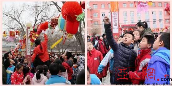 为了更好的弘扬传统民俗,让孩子们感受元宵节氛围,学校在校园操场处将树与树之间用线连接,并在线上挂满谜语与红灯笼,布置出了一片喜气洋洋的猜谜区。学校准备了1000多个灯谜让学生们竞猜,这些灯谜不仅保留了传统古诗、对联,也加入了许多流行新元素。