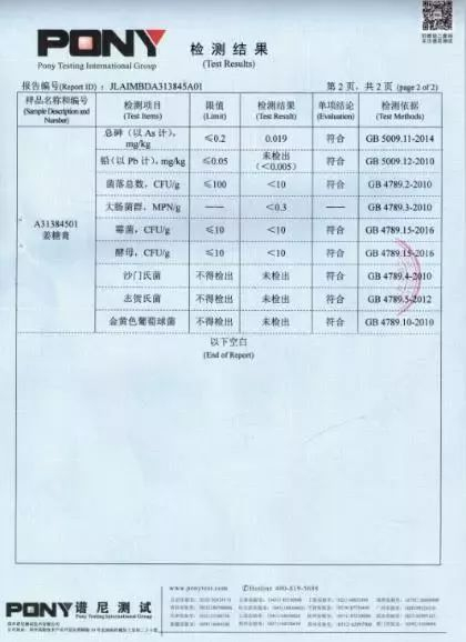 为了让购买的消费者更加的安全放心,我们选自的博爱县倍青春怀姜糖膏,特意抽选样品让全国最具权威的检测机构--谱尼测试进行检验,检测结果各项指标全部达标。