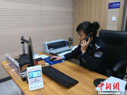 图为户籍室民警为电话咨询的民众解答相关问题。 阿琳娜 摄