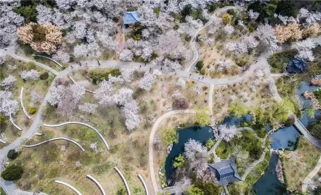 紫金山里最好赏樱花地点在明孝陵,这里的樱花园内有三千多株樱花,纯白、粉白、粉红的花瓣半舒半展,掩映在古雅的亭台楼阁之间,有一丝羞怯的春意。