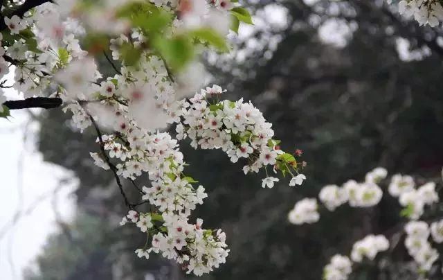 园内樱花以晚樱为主,还有非常名贵的绿色复瓣晚樱。春风拂过,落英缤纷,颇有情趣。