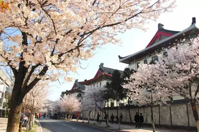 南京最富盛名的赏樱大道当属“鸡鸣寺路”,古朴黄墙映衬下的樱花,繁花似锦,千娇百媚,有种让人震撼的美。