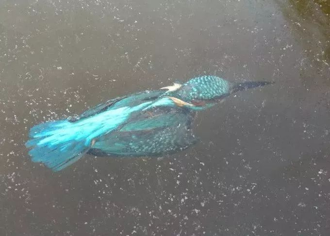 翠鸟入水抓鱼遭冰封 彷佛时间停止般被保存了下来