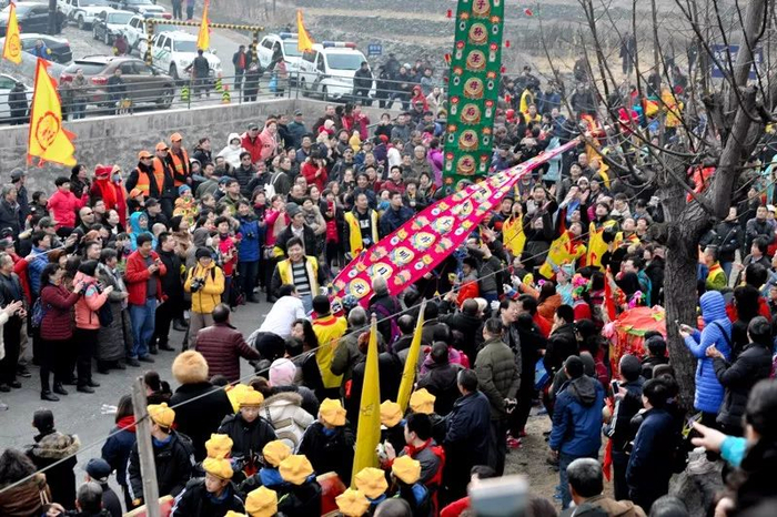 特别有意思的是,幡会实际在千军台和庄户两个村之间举行,正月十五这天千军台村是主会,第二天则交换了主客场。两村互为主客,带有互相拜访性质的走会。独特的走会使得两村关系密切而融洽,两村共有的“朝顶进香”幡就是例证。