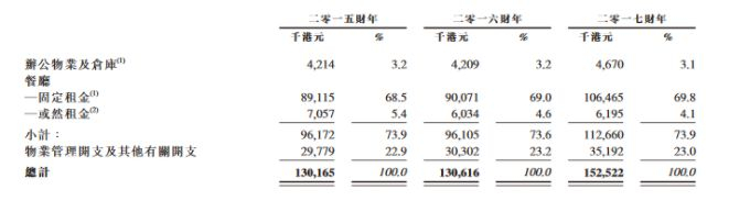 招股书显示,净利润下降是因叙福楼在2017财年折旧及摊销、物业租金及相关开支两项上相比2016财年大幅增加所致。而物业租金这一项涨得尤其厉害,且三年来,这一项在叙福楼收入中所占的比重呈现出上涨的趋势。